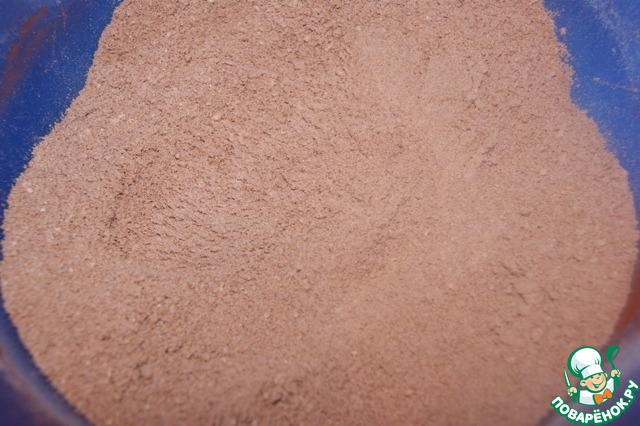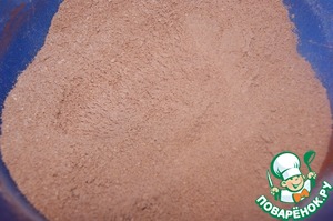 Добавить в него муку 90 г и просеянное какао, добавить 100 г масла. Хорошо перемешать.