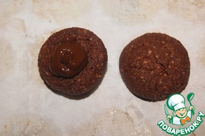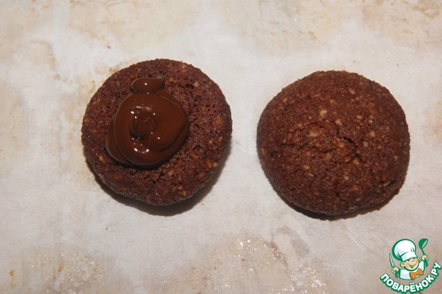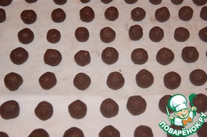 Из шоколадного теста скатать шарики величиной с вишню. Поместить их на расстоянии друг от друга на противень, застеленный пекарской бумагой и отправить в холодильник на 30-40 минут.
