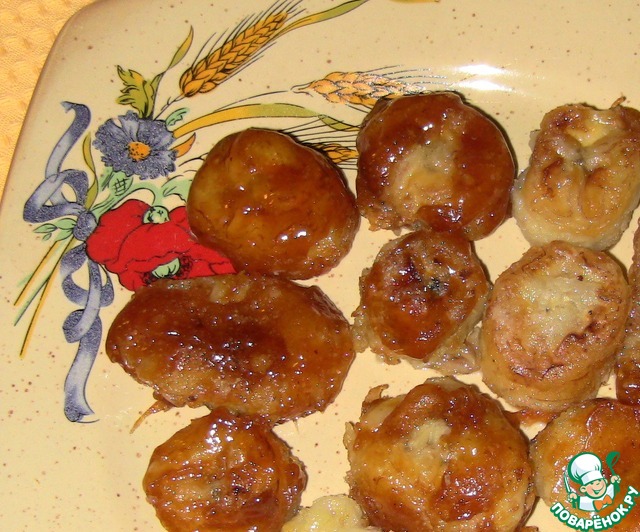 Получилось вкусно, но водянисто. Обваливала в кукурузном крахмале, зажарилось не очень хорошо (может из-за крахмала, может еще что) когда из сахара в воду,а потом на тарелочку - вся глазурь слипалась, отходила от бананов, да еще и на дне много воды потом оказалось, аккуратных и глазурованных кусочков не вышло, они и не затвердели. С рецептом всё хорошо, вам спасибо, восхищаюсь вашим фото с такими красивыми и аккуратными карамельными бананами, тоже хочу так уметь )))