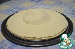 Тесто разделить на две равные части. Одну раскатать в круг.