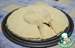 Остаток теста раскатать в виде круга и накрыть им начинки. Сверху придавить слегка круглой формой яблочную начинку.
