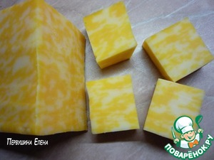 Окунуть каждый кубик сыра в полученную массу и выложить на бумагу.