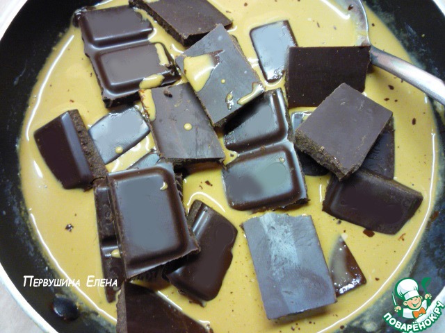 и колотый шоколад. Когда шоколад растает, размешать массу до однородной консистенции.