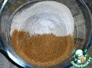 В одной миске смешать муку, сахар, разрыхлитель и соль