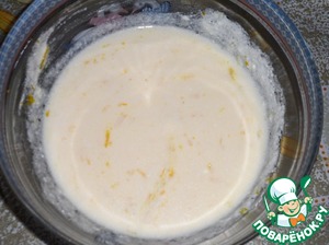 В другой миске смешать сливочный сыр, воду, масло, лимонную цедру, лимонный сок и яйцо