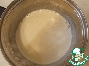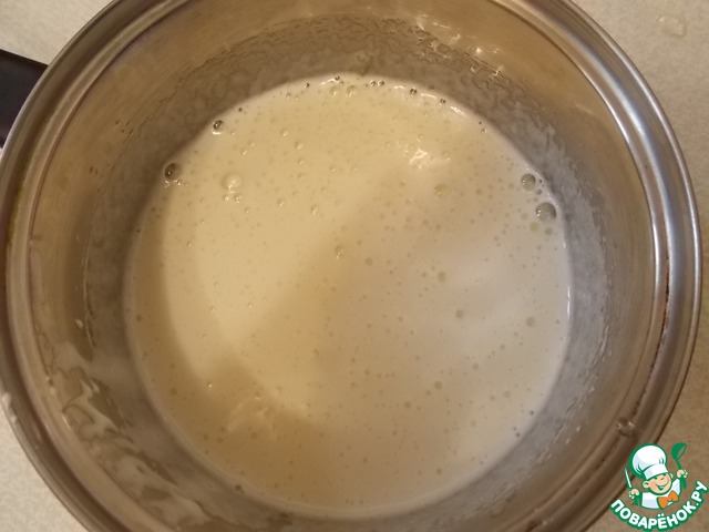 Всыпать муку и перемешать. Если очень жидко, добавьте муки.