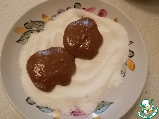 Тесто брать чайной ложкой и класть в сахарную пудру. Аккуратно обвалять со всех сторон.