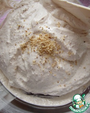 В 2-3 приема вмешать лопаткой молотый фундук, аккуратно, стараясь не нарушить воздушность массы.