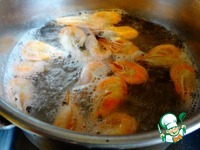 Отварить креветки в течении 1 мин. Обдать холодной водой и освободить от панцирей. |