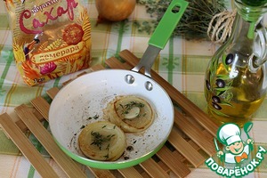 На оливковом масле обжарить лук примерно по 4 минуты с каждой стороны.
