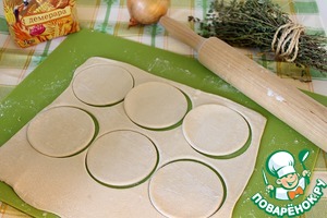 Тесто раскатать, вырезать кружки чуть больше диаметра формочек.