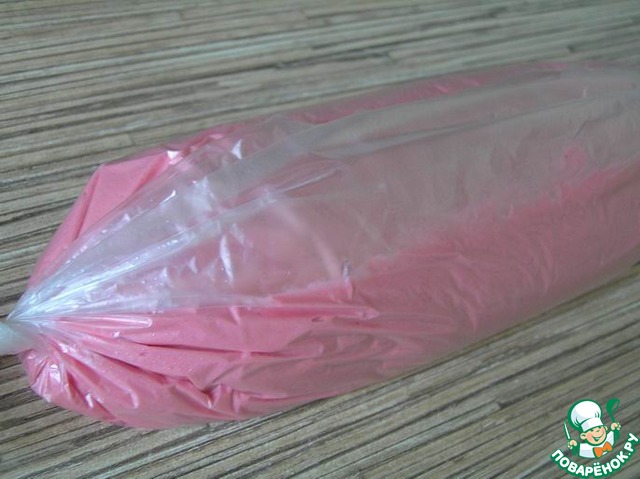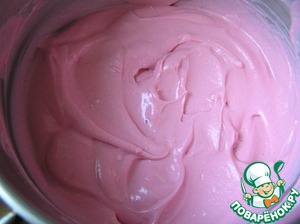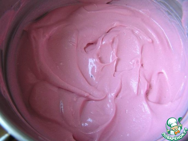 Приготовить начинку-сердце. Смешать калину с творожным сыром, сахарной пудрой и красителем.