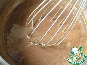 Приготовить крем. Желатин замочить в молоке. Желтки смешать с коричневым сахаром, поставить на небольшой огонь и, помешивая, довести до 85*С (или пока не начнет образовываться пар).