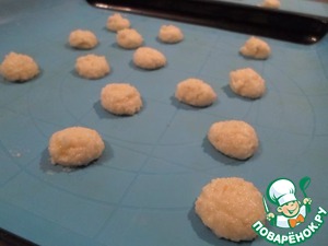 Отсаживаем печенье на противень с помощью кондитерского мешка с широкой круглой насадкой или чайной ложкой. Оставляем подсыхать при комнатной температуре на два часа. У меня корочка на печенье образовалась уже где-то через час, и я не стала ждать дальше. Выпекаем в среднем 15 минут при температуре 150 гр. C. Ориентируйтесь по своей духовке и собственному вкусу. Чем дольше будете держать в духовке, тем суше печенье будет становиться. Для конфетной начинки у меня ушла где-то половина получившегося печенья, остальное можно присыпать сахарной пудрой и съесть просто так. Оно получается очень ароматное и вкусное.