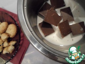Для начинки растапливаем 70 г шоколада и 2 ст. л. сливок любой жирности.
