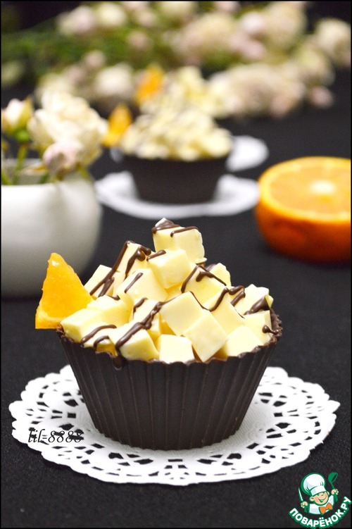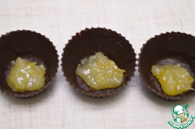 Рецепт «Шоколадные корзинки с лимонным конфи и апельсиновым желе»: