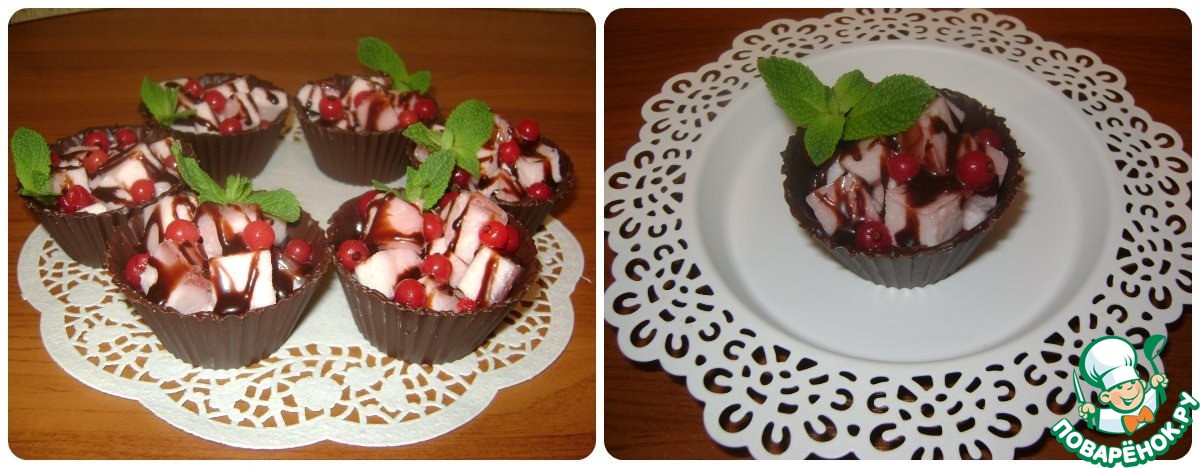 Шоколадные корзинки с лимонным конфи и апельсиновым желе