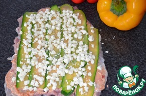 • Сверху выложить полосочки цукини и малко нарезанную фету!