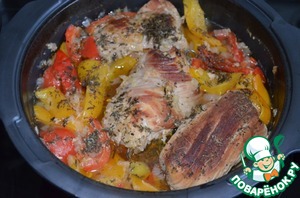 Добавить бульон или воду, вскипятить и поставить в духовку при 180 градусах на 60-70 минут.