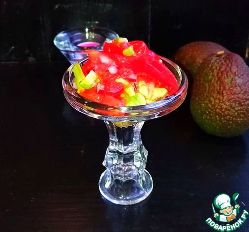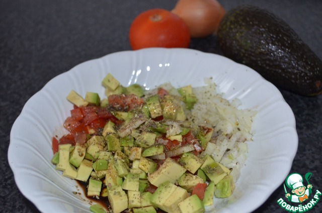 Лови отчётик! Вкусный салатик! Люблю такое сочетание - сочно, полезно, вкусно! Авокадо у меня с тёмной шкуркой - Hass что-ли. Лук правда не добавляла - не люблю лук , помидорки черри - красные и жёлтые! Зелени свежей не было, но и с сухой замечательно получилось! Спасибо, дорогая, за прекрасный рецепт! Целую!