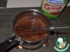 К молоку добавить шоколад, разломанный на кусочки, распущенный в микроволновой печи желатин. Размешать венчиком, пока масса не станет однородной и глянцевой. Поставить в холодильник на 10-15 минут.