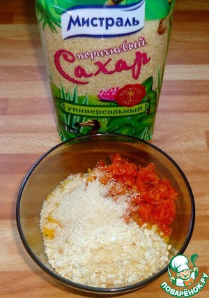 Подготовленные ингредиенты для начинки соединить, добавить коричневый сахар.