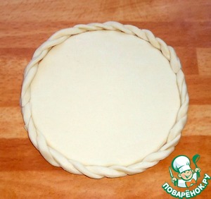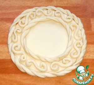 Две спирали из теста выложить вокруг круга из теста и соединить.