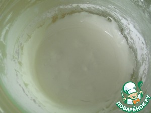 Приготовим глазурь. Смешать 15 гр муки с 125 гр сахарной пудры, быстро взбить, добавив 1 белок, до белой блестящей и густой массы, под конец взбивания добавить пару капель лимонного сока.