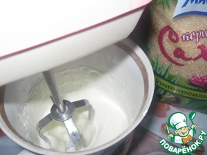Взбить оставшиеся сливки 1 ст. л. сахарной пудры.