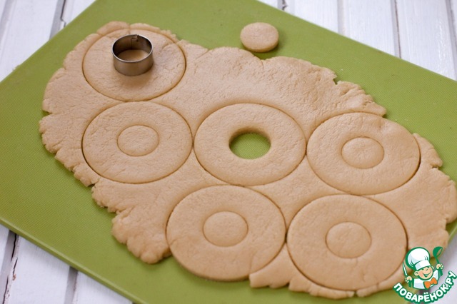 Раскатайте тесто и вырежьте кольца. Диаметр самого большого кольца у меня составил 6 см.