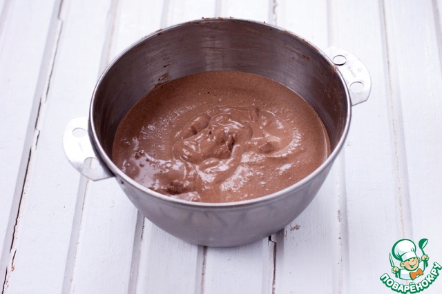 Готовим трюфельную начинку. Охлажденные сливки с шоколадом взбить миксером. Масса должна загустеть. Если вдруг она осталась жидковатой и вы видите, что форму она не держит, не пугайтесь - уберите ее снова в морозилку. Через полчаса она хорошо застынет и вы сможете продолжать.