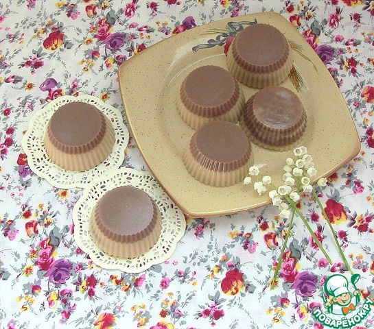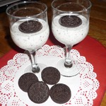 У меня получилось 6 формочек объемом 70 мл и один бокал для вина, в который печенье я положила сверху. Вот, кстати, еще один эффектный вариант подачи этого десерта.