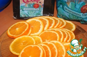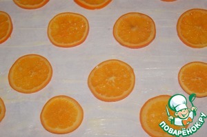 3 Апельсин (некрупный) — 3 шт тонко нарезать. Возникает вопрос насколько тонко резать??? У меня 3 апельсина заняли ВСЮ поверхность на противне.