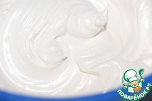 Белки 4 шт взбить с 2 каплями уксуса (у меня белый) в пену и, не переставая взбивать, ввести 150 г сахара. Взбить до устойчивых мягких пиков.