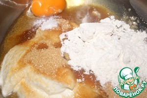 Заварной сметанный крем: Смешать сметану, 1 небольшое яйцо, ваниль 1 г, муку 1,5 ст. л. и сахар 120 г.