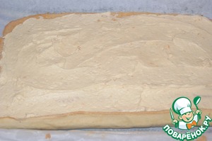 Аккуратно развернуть бисквит и нанести на него крем. Свернуть уже без бумаги и полотенца.