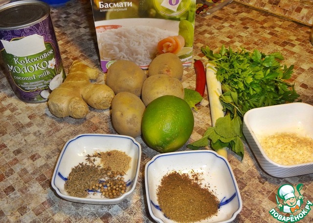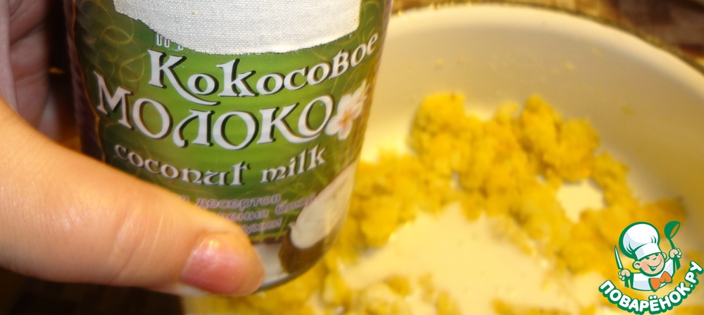 Добавить в картошку кокосовое молоко и специи. Со специями будьте осторожны, кладите понемногу. Я положила куркуму, гарам масалу и немного пажитника.