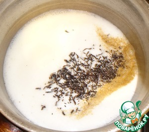 Кипятят воду пополам с молоком, бросают туда специи и сухую заварку. -