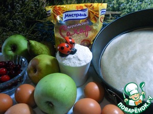 Шарлотка — один из самых простых и вкусных пирогов. Предлагаю вашему вниманию рецепт приготовления шарлотки с грушей, яблоком и клюквой.