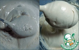 Белки взбейте с сахаром до густого крема. Добавьте немного лимонного сока.