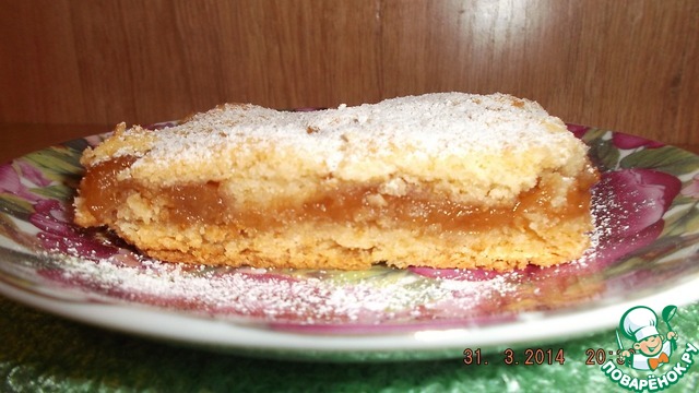 И аккуратно накрыть вторым пластом теста. Выпекать еще минут 30 (до зарумянивания верхней корочки). Остудить. Разрезать на порции.