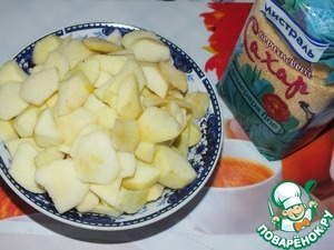 Тем временем очистить яблоки от кожуры и нарезать тонкими дольками
