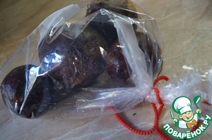 Свекла моется и укладывается в пакет для запекания. Пакет завязывается или затягивается специальными зажимами. Зубочисткой или кончиком ножа прокалывается дырочка. Саму свеклу прокалывать не стоит, так как целостность кожуры создаёт дополнительную задержку тепла, и она лучше пропаривается. Свекла запекается на предельной мощности 10-15 минут (всё зависит от мощности вашей микроволновки). Не пугайтесь, она будет немного отстреливаться. После сигнала свёкла остаётся в выключенной микроволновке ещё 5 минут. Потом пакет можно убрать... -