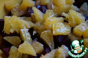 Расположить апельсин поверх свеклы. Сбрызнуть маслом.