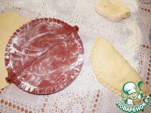 Лепим пирожки. Я леплю с вот такой удобной штучкой для чебуреков.