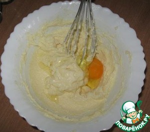 Добавить по очереди яйца (следующее яйцо добавлять после того, как перемешается предыдущее).
