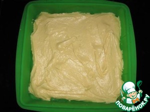 Выложить белое тесто в форму (форму не смазывала, т. к. в тесте присутствует жир), равномерно распределить по всей форме.