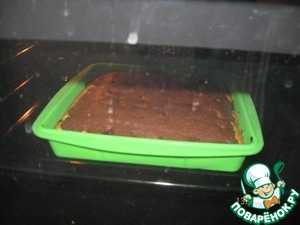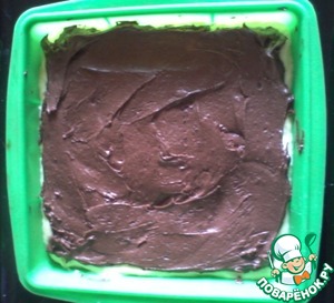Сверху выкладываем тесто с какао, также распределяем по форме.