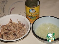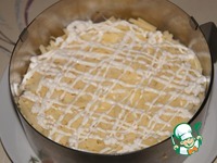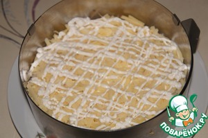 Снова нанести сеточку из майонеза. Затем выложить смесь тунца с луком и опять сеточка из майонеза. |