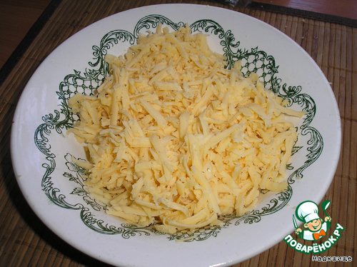 И присыпаем тертым сыром. Ставим в духовку на 5 минуток, чтобы сыр расплавился.